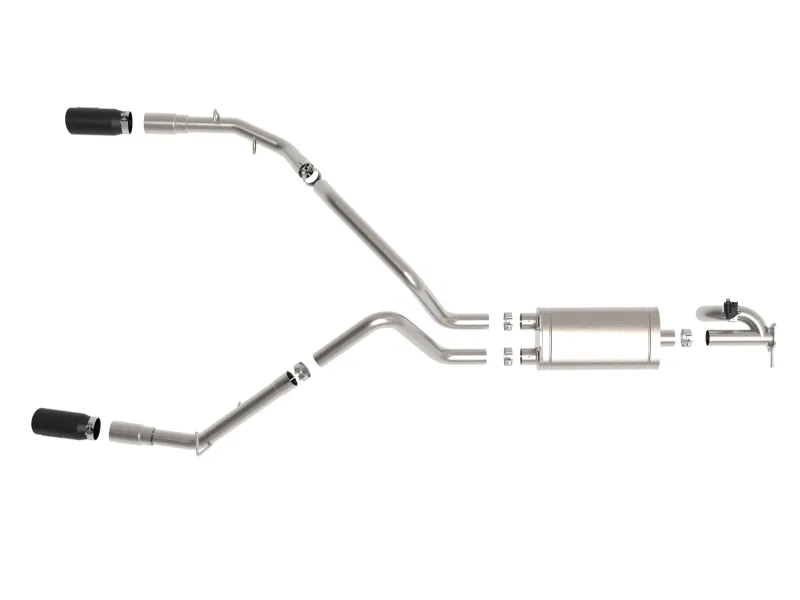 This system produced gains of up to +22 HP and +26 lbs. x Ft. TQ., as measured on our in-house dyno. This cat-back exhaust system is constructed of 3" mandrel-bent 304 stainless steel tubing for maximum strength and durability. This system features a high-flow stainless steel, producing an aggressive sound. Muffler finish may vary. Finishing off this exhaust system are dual 5" diameter black 304 stainless steel clamp-on exhaust tips. The tips feature an aFe POWER logo plate riveted on for a unique style. Gemini XV exhaust features an electronically controlled exhaust cutout valve to quickly switch between mild and aggressive tones at the push of a button. This kit includes two key fob remotes, control module, valve motor, and all necessary wiring. It's a simple installation, requiring no cutting of any wires or interference of the automobile's electronics. Utilizing factory style hangers this system is a direct bolt-on system, which requires no cutting or modifications for a hassle-free installation. Utilizing state-of-the-art computer-aided design technology, this exhaust system is designed for custom, high tolerance factory fitment. 100% MIG-Welded for race-proven strength and durability