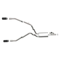 This cat-back exhaust system is constructed of 3 IN mandrel-bent 304 stainless steel tubing for maximum strength and durability. This system features a high-flow stainless steel muffler, producing a aggressive sound. Muffler finish may vary. Finishing off this exhaust system are dual 5 IN diameter black stainless steel clamp-on exhaust tips. The tips features an aFe POWER logo plate riveted on for a unique style. This system produces an aggressive sound unleashing all available horsepower and torque. Utilizing factory style hangers this system is a direct bolt-on system, which requires no cutting or modifications for a hassle-free installation. This kit includes key fob remotes, control module, valve motor, and all necessary wiring. It's a simple installation, requiring no cutting of any wires or interference of the automobile's electronics. This system features an electronically controlled exhaust cutout valve to quickly switch between exhaust tones at the push of a button. Utilizing state-of-the-art computer-aided design technology, this exhaust system is designed for custom, high tolerance factory fitment. 100% MIG-Welded for race-proven strength and durability.
