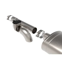 This cat-back exhaust system is constructed of 3 IN mandrel-bent 304 stainless steel tubing for maximum strength and durability. This system features a high-flow stainless steel muffler, producing a aggressive sound. Muffler finish may vary. Finishing off this exhaust system are dual 5 IN diameter polished stainless steel clamp-on exhaust tips. The tips features an aFe POWER logo plate riveted on for a unique style. This system produces an aggressive sound unleashing all available horsepower and torque. Utilizing factory style hangers this system is a direct bolt-on system, which requires no cutting or modifications for a hassle-free installation. This kit includes key fob remotes, control module, valve motor, and all necessary wiring. It's a simple installation, requiring no cutting of any wires or interference of the automobile's electronics. This system features an electronically controlled exhaust cutout valve to quickly switch between exhaust tones at the push of a button. Utilizing state-of-the-art computer-aided design technology, this exhaust system is designed for custom, high tolerance factory fitment. 100% MIG-Welded for race-proven strength and durability.