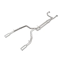 The Vulcans unique X / H-pipe design improves the RAM TRX exhaust flow direction and utilizes no mufflers delivering more power and an aggressive tone throughout the RPM range without interfering with driver or passengers hearing in the cab. Both mitered merge x-pipe and crossover balance tube replaces mufflers to evenly distribute exhaust pulses which maximizes scavenging, reduces drone and improves sound. On the throttle, this system produces an aggressive, deep exterior sound releasing horsepower and torque. At cruising RPMs the Vulcan maintains sound quality in the cab. MIG-welded, 3 IN mandrel-bent 304 stainless steel tubing increases to 3-1/2 diameter tailpipes for a Large Bore style exhaust. Dual 6 IN large diameter, 304 stainless steel polished exhaust tips featuring a laser-etched aFe POWER logos for a unique style. Utilizing factory style flanges and hangers this system is a direct bolt-on system, which requires no cutting or modifications for a hassle-free installation.