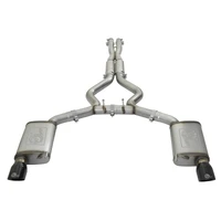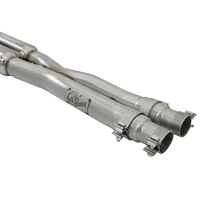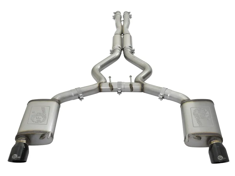 This cat-back exhaust system is constructed of 2-1/2 IN mandrel-bent 304 stainless steel tubing for maximum strength and durability. Finishing off this exhaust system are dual 4-1/2 IN diameter black 304 stainless steel clamp-on exhaust tips. The tips features a laser etched aFe POWER logo for a unique style. This system features high-flow 409 stainless steel polished mufflers, producing an aggressive sound. Muffler finish may vary. This system produces a deep sound unleashing all available horsepower and torque. Designed to equalize and evenly distribute exhaust pulses reducing drone, improving sound. Utilizing factory style flanges and hangers this system is a direct bolt-on system, which requires no cutting or modifications for a hassle-free installation. A mitered merge x-pipe is used to balance and evenly distribute exhaust pulses traveling through the exhaust system, minimizing exhaust drone and maximizing scavenging. State-of-the-art computer-aided design technology is utilized for precise vehicle fitment. 100% MIG-Welded for race-proven strength and durability.