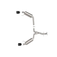 This axle-back exhaust system is constructed of 2-1/2 IN mandrel-bent 304 stainless steel tubing for maximum strength and durability. This system features dual high-flow stainless steel mufflers, producing an aggressive sound. Muffler finish may vary. Finishing off this exhaust system are dual 4-1/2 IN diameter black 304 stainless steel clamp-on exhaust tips. The tips features a laser etched Takeda logo for a unique style. This system produces an aggressive sound unleashing all available horsepower and torque. Utilizing a factory style flange and hangers this system is a direct bolt-on system, which requires no cutting or modifications for a hassle-free installation. Utilizing state-of-the-art computer-aided design technology, this exhaust system is designed for custom, high tolerance factory fitment. 100% MIG-Welded for race-proven strength and durability.