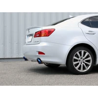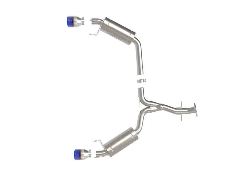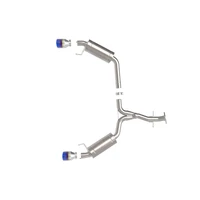 This axle-back exhaust system is constructed of 2-1/2 IN mandrel-bent 304 stainless steel tubing for maximum strength and durability. This system features dual high-flow stainless steel mufflers, producing an aggressive sound. Muffler finish may vary. Finishing off this exhaust system are dual 4-1/2 IN diameter blue flame 304 stainless steel clamp-on exhaust tips. The tips features a laser etched Takeda logo for a unique style. This system produces an aggressive sound unleashing all available horsepower and torque. Utilizing a factory style flange and hangers this system is a direct bolt-on system, which requires no cutting or modifications for a hassle-free installation. Utilizing state-of-the-art computer-aided design technology, this exhaust system is designed for custom, high tolerance factory fitment. 100% MIG-Welded for race-proven strength and durability.