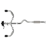 This cat-back exhaust system is constructed of 3 IN - 2-1/2 IN mandrel-bent brushed finished 304 stainless steel tubing for maximum strength and durability. This system features a high-flow 304 stainless steel muffler, producing a deep sound. Finishing off this exhaust system are dual 4-1/2 IN diameter black 304 stainless steel clamp-on exhaust tips. The tips features a laser etched Takeda logo for a unique style. This system produces a deep sound unleashing all available horsepower and torque. This kit includes key fob remotes, control module, valve motor, and all necessary wiring. It's a simple installation, requiring no cutting of any wires or interference of the automobile's electronics. This system features an electronically controlled exhaust cutout valve to quickly switch between exhaust tones at the push of a button. A mitered merge collector is used to decrease turbulence and increase exhaust velocity resulting in increased horsepower, torque and improved throttle response. State-of-the-art computer-aided design technology is utilized for precise vehicle fitment. 100% TIG-Welded for race-proven strength and durability.