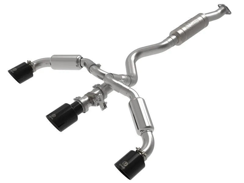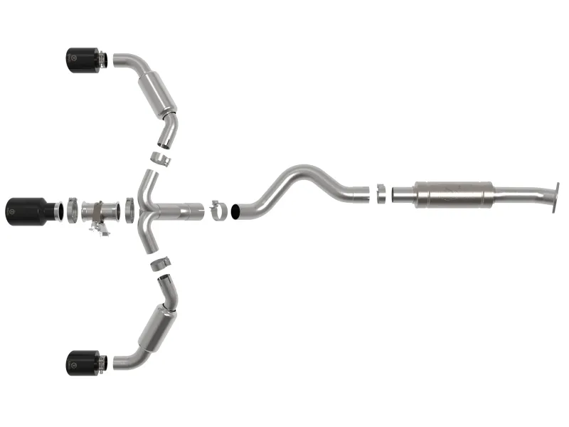 This cat-back exhaust system is constructed of 3 IN - 2-1/2 IN mandrel-bent brushed finished 304 stainless steel tubing for maximum strength and durability. This system features a high-flow 304 stainless steel muffler, producing a deep sound. Finishing off this exhaust system are dual 4-1/2 IN diameter black 304 stainless steel clamp-on exhaust tips. The tips features a laser etched Takeda logo for a unique style. This system produces a deep sound unleashing all available horsepower and torque. This kit includes key fob remotes, control module, valve motor, and all necessary wiring. It's a simple installation, requiring no cutting of any wires or interference of the automobile's electronics. This system features an electronically controlled exhaust cutout valve to quickly switch between exhaust tones at the push of a button. A mitered merge collector is used to decrease turbulence and increase exhaust velocity resulting in increased horsepower, torque and improved throttle response. State-of-the-art computer-aided design technology is utilized for precise vehicle fitment. 100% TIG-Welded for race-proven strength and durability.