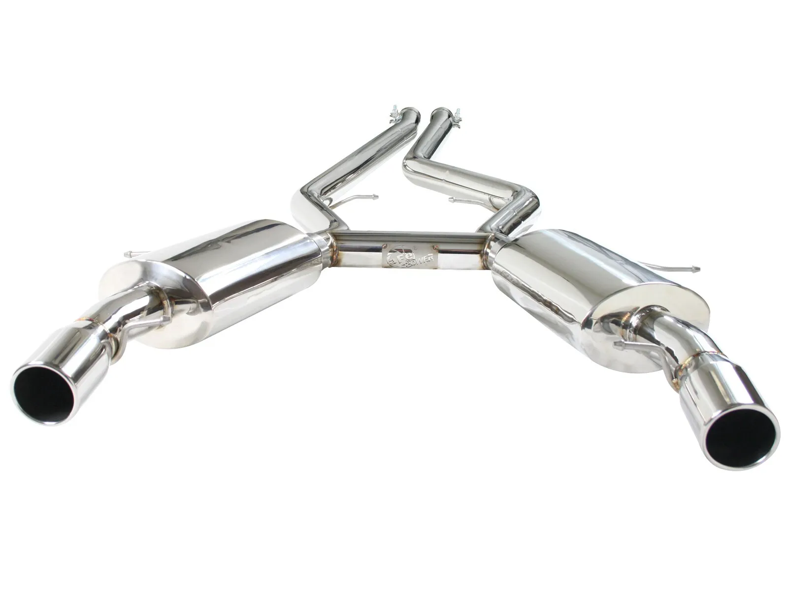 The Mach Force XP cat-back exhaust system produces 11 hp and 10 lbs. x ft. of torque for your BMW 335i. This exhaust systems is constructed from 2.75" mandrel bent, 304 hand brushed stainless steel and utilizes a unique crossover pipe that helps to equalize exhaust pressure and tunes the exhaust pulse. The system also comes with dual 3.5" polished 304 stainless steel tips and muffler to build a mellow, yet powerful sound. Note: Cutting is required and should be performed by a skilled technician.Leak-Free Seal: High quality band clamps are used for a complete 360 degree sealing surface.Aggressive Sound: A free-flowing mufflers is used to absorb high pitch tones producing a powerful sound and unleashing all available horsepower and torque.