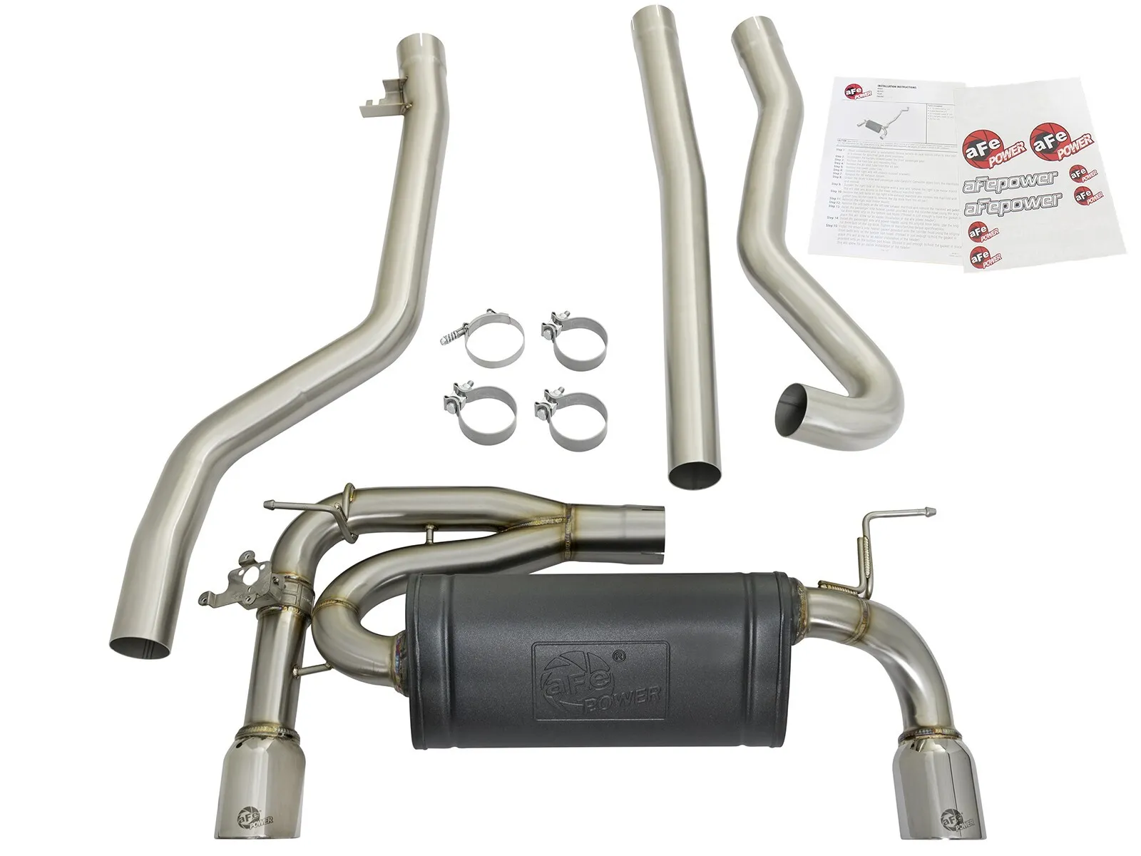 Dual 4" Polished Tips: Finishing off this system are dual 4" diameter, polished, 304 stainless steel tips. The tips come with a laser-etched aFe POWER logo for an aggressive style.