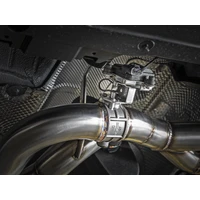 Exhaust valve: This axle-back exhaust system incorporates a factory style exhaust valve which uses the factory exhaust valve motor (not included). The valve helps regulate, direct and control the flow of exhaust gases by opening, closing, or partially obstructing passageways depending on throttle position for maximum performance.