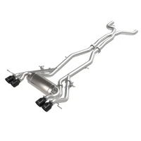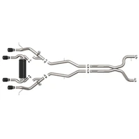 This cat-back exhaust system is constructed of 3 IN - 2-1/2 IN mandrel-bent 304 stainless steel tubing for maximum strength and durability. This system features a high-flow stainless steel muffler, producing an aggressive sound. Muffler finish may vary. Finishing off this exhaust system are quad 4 IN diameter black 304 stainless steel clamp-on exhaust tips. The tips features a laser etched aFe POWER logo for a unique style. This system produces an aggressive sound unleashing all available horsepower and torque. Some cutting may be required, see instruction sheet for further information. Utilizing factory style hangers this system mounts directly to factory mounting locations for a hassle-free installation. A mitered merge x-pipe is used to balance and evenly distribute exhaust pulses traveling through the exhaust system, minimizing exhaust drone and maximizing scavenging. This system incorporates factory style exhaust valves which use the factory exhaust valve motors (not included). The valves help regulate, direct and control the flow of exhaust gases by opening, closing, or partially obstructing passageways depending on throttle position for maximum performance. State-of-the-art computer-aided design technology is utilized for precise vehicle fitment. 100% TIG-Welded for race-proven strength and durability.
