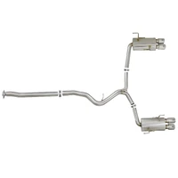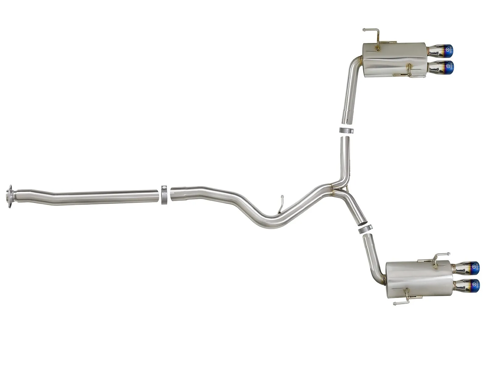This Takeda dual cat-back exhaust system for the 2015-2020 Subaru WRX and WRX STI delivers true bolt-on performance with gains up to +14 horsepower and +22 lbs. x ft. of torque as measured on our in-house dyno. 3" into 2-1/4" mandrel-bent 304 stainless steel tubing, mitered merge and dual, stainless steel high flow mufflers evenly distribute exhaust gases to improve performance across the power band while maintaining an aggressive sound. Quad, 304 stainless steel, blue flame 3-1/2” diameter tips with laser-etched Takeda logos complete the look.