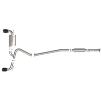 This cat-back exhaust system is constructed of 3 IN mandrel-bent 304 stainless steel tubing for maximum strength and durability. This system features high-flow 304 stainless steel mufflers, producing a aggressive sound. Finishing off this exhaust system are dual 5 IN diameter black 304 stainless steel exhaust tips. The tips features a laser etched Takeda logo for a unique style. This system produces an aggressive sound unleashing all available horsepower and torque. Utilizing factory style flanges and hangers this system is a direct bolt-on system, which requires no cutting or modifications for a hassle-free installation. This system incorporates a factory style exhaust valve which use the factory exhaust valve motor (not included). The valve helps regulate, direct and control the flow of exhaust gases by opening, closing, or partially obstructing passageways depending on throttle position for maximum performance. A mitered merge collector is used to decrease turbulence and increase exhaust velocity resulting in increased horsepower, torque and improved throttle response. State-of-the-art computer-aided design technology is utilized for precise vehicle fitment. 100% MIG-Welded for race-proven strength and durability.