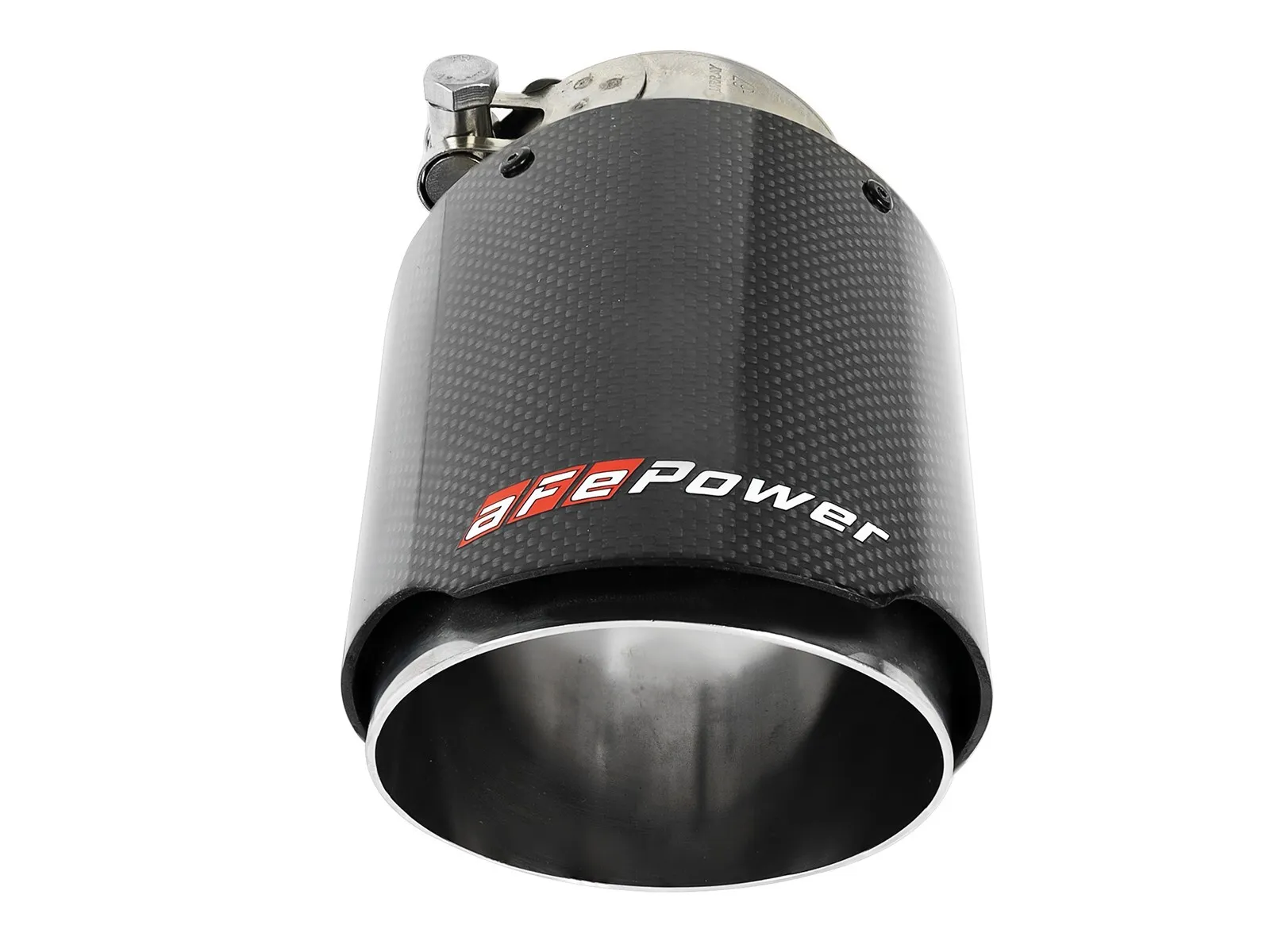 Upgrade your exhaust with an aFe POWER 4" universal, carbon fiber clamp-on tip. Designed to accommodate 2-1/2" exhaust systems, this dual wall, carbon fiber, stainless steel tip bolts on easily with a quality barrel clamp. No cutting or welding required.