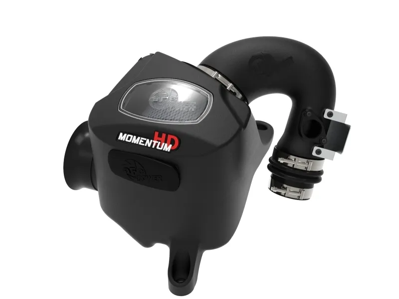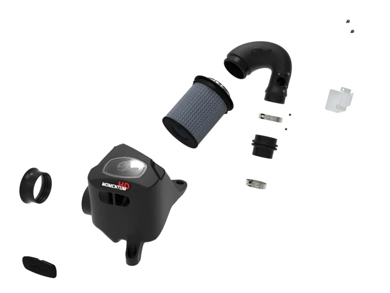 Momentums unique filter-to-housing interface was built to feature the largest air filter possible. This 8 tall, pre-oiled 360-degree radial flow air filter features a 4 flange and our pre-oiled Pro 10R media with ten layers of progressively finer cotton gauze media for maximum performance and filtration. Its inverted top and large surface area provide much longer life between maintenance intervals, while reinforced metal provides maximum strength to prevent filter collapse. This media is best suited for off-road applications. The smooth one-piece sealed housing, constructed of heat-resistant cross-linked polyethylene (XLPE), features our patent-pending filter-to-housing interface. Its innovative design minimizes the total number of parts, making for an easy installation. A large, clear sight window allows for hassle-free filter inspection, without having to disassemble your system. The housing connect to the factory air inlet, using no additional hardware, and features an optional auxiliary air inlet that pulls in additional air. A plug is provided to close the auxiliary opening. This system features a high quality, computer-designed, dyno-tuned intake tube to achieve maximum power gains while maintaining a perfect fit. Its XLPE material is heat soak resistant and extremely durable. Stainless-steel T-bolt clamps are included for strength, and a premium bellows silicone coupling allows for ample flexibility. Momentum HD intakes are designed with fewer parts for a fast and easy installation. This product does not require a CARB EO# (Vehicle does not exist in U.S.).