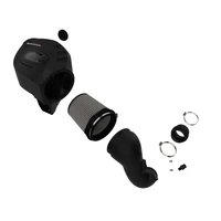 This 6-1/2 tall 360-degree radial flow air filter features a 5-1/2 round flange and our oil-free Pro DRY S media with three layers of synthetic media for maximum convenience. Its progressive layering provides great filtration efficiency and dust holding capacity, while not requiring the use of oils. This media is best suited for street and light off-road use. The smooth one-piece sealed housing, constructed of heat-resistant XLPE (cross-linked polyethylene) polymer, features our patent-pending filter-to-housing interface. A large, clear sight window allows for hassle-free filter inspection, without having to disassemble your system. This system features a high quality, computer-designed, dyno-tuned intake tube to achieve maximum power gains while maintaining a perfect fit. Its XLPE material is heat-soak resistant and extremely durable. This intake is designed to use factory mounting locations, minimizing the use of unnecessary hardware, ensuring a perfect fit every time. Its revolutionary design, featuring our patent pending filter-to-housing interface uses half the number of parts of a traditional cold air intake system. Stainless-steel worm clamps are included for strength, and a premium silicone coupling allows for ample flexibility.
