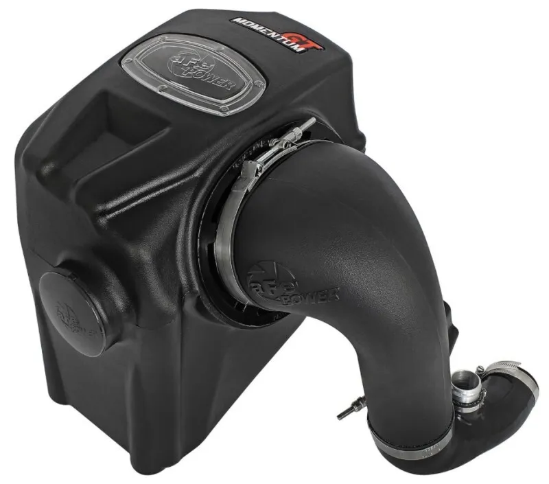Unique One-Piece High Quality Housing w/ Auxiliary Scoop: The smooth one-piece high quality sealed housing with auxiliary air inlet is used to eliminate the use of multiple-piece housings and ensure the coolest air intake charge available. A large, clear sight window is used for a hassle-free filter inspection and an aggressive style. A urethane plug is also included if you wish to block off the auxiliary air inlet. (US PAT 9440175) For Filter-to-Housing Interface. High Quality Tube: This system uses a high quality, dyno-tuned intake tube to achieve maximum power gains while maintaining a perfect fit. Custom High Temp. Silicone Coupling: A custom high temperature reinforced silicone elbow coupling with aluminum fitting is included for easy install to the factory breather line. Huge Pro DRY S Performance Air Filter: The Momentum GT is designed around a massive oil free Pro DRY S performance 360 degree radial flow air filter with 3-layers of progressive finer porosity synthetic media providing maximum convenience. and is constructed with 100% polyurethane frame for long life and multiple cleaning cycles. The unique filter-to-housing interface (patent pending) allows for maximum filter size which increases the available air volume while simplifying the installation process. Premium Hardware: Premium clamps and a silicone elbow coupling are used for strength and flexibility while also providing the most secure installation available. Momentum intakes are designed with fewer parts for a quick and simple installation.