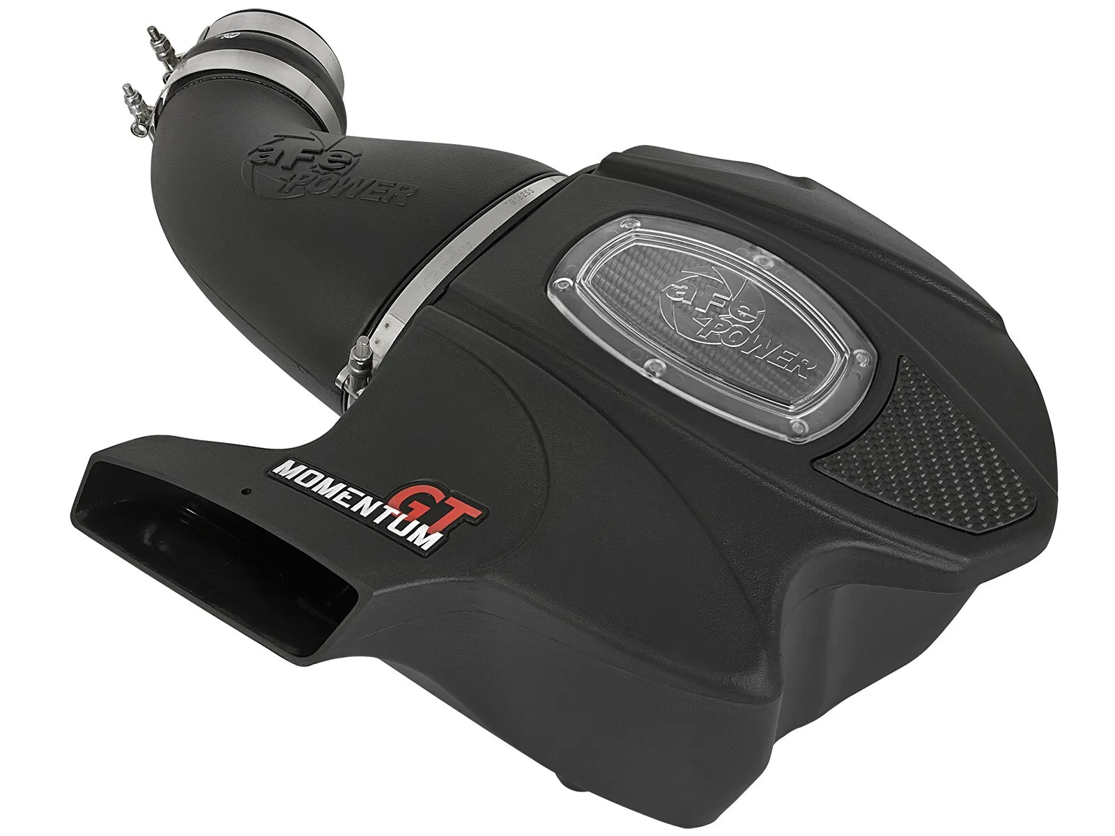 This Momentum GT intake system was designed around the largest filter possible to allow maximum performance and filtration. This cone filter has a large (6-3/4" x 4-3/4") oval flange and is 9" tall with an inverted top. The Pro DRY S performance air filter features 3-layers of progressive finer porosity synthetic media providing maximum convenience with 100% polyurethane frame for long life and multiple cleaning cycles.