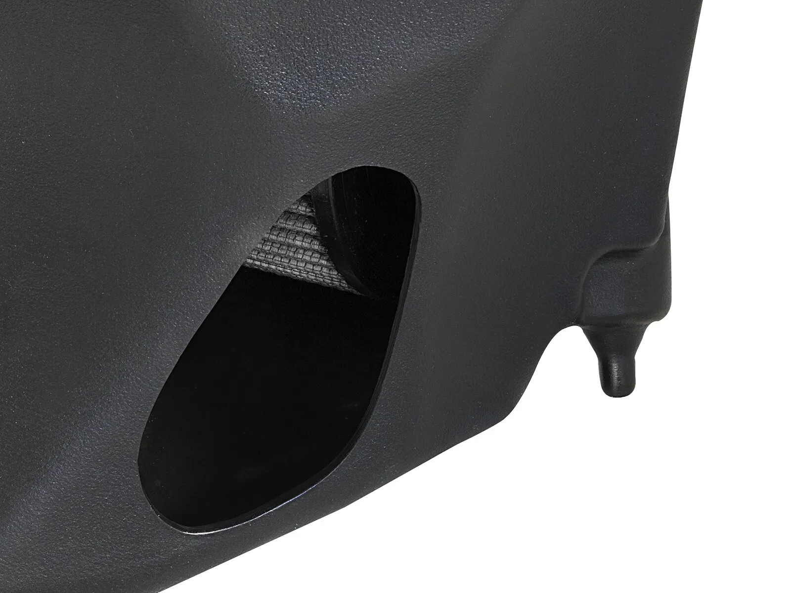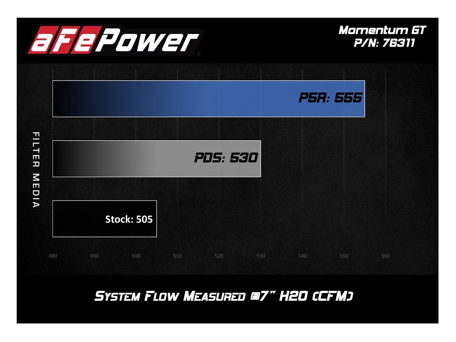 Large 3-Layer Performance Air Filter: The Momentum GT intake is designed around an oil-free, large 7-1/2" tall inverted top 360 degree radial flow performance air filter with 3-layers of progressive finer porosity synthetic media providing maximum convenience. The unique air filter to housing interface (patent pending) allows for maximum filter size which increases the available air volume while simplifying the installation process.