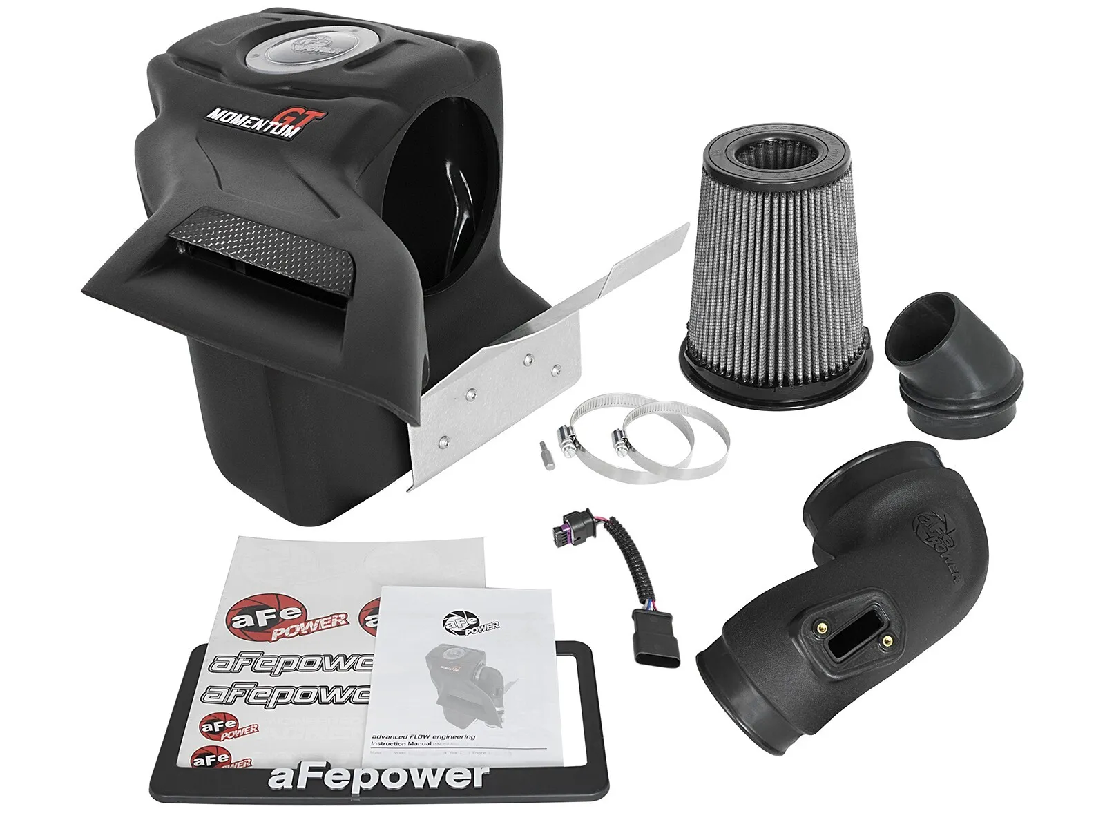 Large 3-Layer Performance Air Filter: This Momentum GT intake system was designed around the largest filter possible to allow maximum performance and filtration. This cone filter has a large round flange and is 7" tall with an inverted top. The Pro DRY S performance air filter features 3-layers of progressive finer porosity synthetic media providing maximum convenience with 100% polyurethane frame for long life and multiple cleaning cycles.