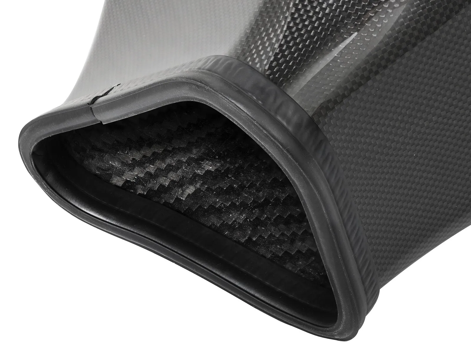 Dyno-Tuned Carbon Fiber Intake Tube: Lightweight high gloss clear-coated plain weave 100% carbon fiber tube (no fiberglass) to achieve maximum power gains while maintaining a perfect fit, and the entire intake assembly weighs 5% less than OE. This tube has a built-in resonance chamber to catch un-wanted air intake noises.
