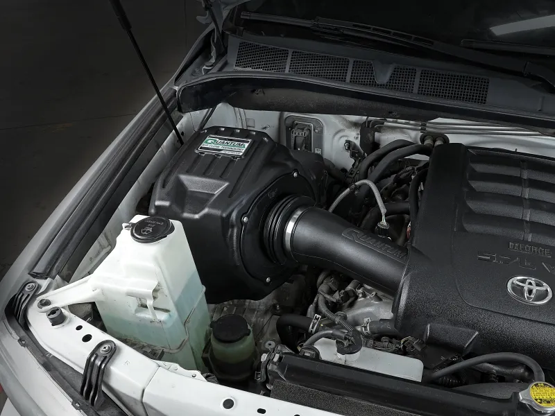 This 9 tall 360-degree radial flow air filter features a 5" flange and our pre-oiled Pro 5R media with five layers of progressively finer cotton gauze media for maximum performance. It provides your engine with the largest amount of high-flowing air and delivers the highest power gains in most cases. This media is perfect for street use. Its inverted top makes for more filter surface area, resulting in longer service intervals. The filter features an injection molded base and top for lighter weight and rigidity. Its base includes a built-in 3-angle velocity stack for smooth, even airflow and captive screws to easily attach the filter to the housing. Quantum uses an integrated filter-to-housing design that attaches both components with four captive screws, making for a positive surface area seal and easy installation. Its durable sealed housing features a unique, five rib, industrial-grade look for aFe quality recognition. Quantum uses a dyno-tuned, computer designed intake tube to achieve optimum air flow and a perfect fit. Its XLPE (cross-linked polyethylene) material is heat soak resistant and extremely durable. Quantum cold air intake systems include a silicone bellows coupling to absorb excessive engine movement and provide flexibility, for a long-lasting secure installation. Quantum intakes are designed with fewer parts for a quick and easy installation. This is a direct fit intake system that utilizes factory mounting points and requires no cutting or modifications. All necessary clamps, couplings, and hardware are included.