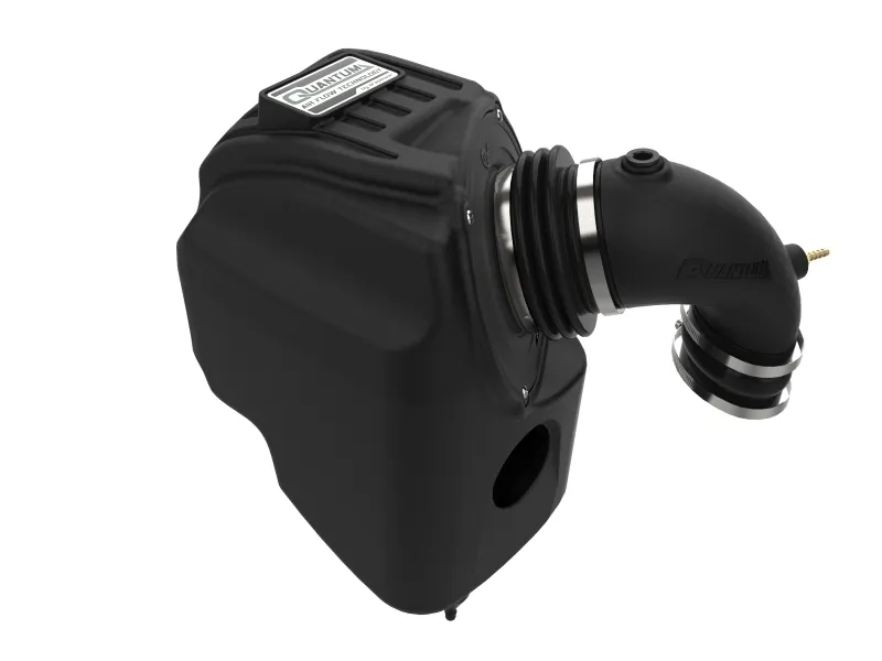Large Three Layer Performance Air Filter: This 360-degree radial flow air filter features a 5" flange and our oil-free Pro DRY S media with three layers of synthetic media for maximum convenience. Its progressive layering provides great filtration efficiency and dust holding capacity, while not requiring the use of oils. This media is best suited for street and light off-road use. The filter features an injection molded base and top for lighter weight and rigidity. Its base includes a built-in 3-angle velocity stack for smooth, even airflow and captive screws to easily attach the filter to the housing. Unique Integrated Filter-to-Housing Design: Quantum uses an integrated filter-to-housing design that attaches both components with four captive screws, making for a positive surface area seal, as well as easy installation and maintenance. Its durable sealed housing features a unique, five rib, industrial-grade look for aFe quality recognition. Dyno-Tuned Intake Tube: Quantum uses a dyno-tuned, computer designed intake tube to achieve optimum air flow and a perfect fit. Its XLPE (cross-linked polyethylene) polymer material is heat soak resistant and extremely durable. Silicone Couplings: This Quantum intake system includes a flexible bellows-style coupling and a durable reinforced silicone coupling. Hassle-Free Installation: Quantum intakes are designed with fewer parts for a quick and easy installation. This is a direct fit intake system that utilizes factory mounting points and requires no cutting or modifications. All necessary clamps, couplings, and hardware are included.