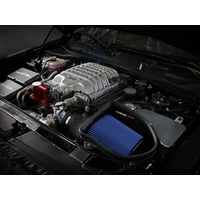This 7 tall 360-degree radial flow air filter features our pre-oiled Pro 5R media with five layers of progressively finer cotton gauze media for maximum performance. It provides your engine with the largest amount of high-flowing air and delivers the highest power gains in most cases. This media is perfect for street and/or track use. This air filter was specially designed for the SRT Hellcat / SRT Demon / SRT Redeye. The included massive air filter is surrounded by an open-element XLPE (cross-linked polyethylene) polymer housing that minimizes warm engine air for maximum performance. Its open design allows for easy viewing of the massive air filter, yet seals to the hood to gather air from the factory hood scoop. The housing also connects to the factory headlight air inlet thanks to the scoop inlet provided. This system features a high quality, computer-designed, dyno-tuned intake tube to achieve maximum power gains while maintaining a perfect fit. Its XLPE material is heat soak resistant and extremely durable. This is a direct fit intake system that utilizes factory mounting points. All necessary clamps, a silicone bellows coupling, and all other hardware is included. For the SRT Hellcat and SRT Hellcat Redeye, the factory MUA (Multi-Air Unit Actuator) is easily connected to the air intake tube. All clamps and hose are provided to guarantee correct crankcase flow, avoiding check engine lights and damaging factory hoses and sensors.