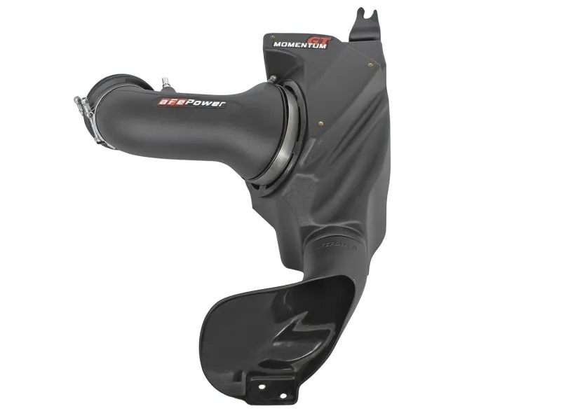 A custom computer designed roto-molded housing eliminates the use of multiple components and ensures the coolest air intake charge available. A clear sight window allows for filter inspection without removal of the airbox. The roto-molded housing is made out of black cross-linked polyethylene. The housing is designed to retain the same water fording height as the factory intake system while providing more air flow and better protection. This System uses a CAD designed, dyno-tuned, roto-molded intake tube to achieve maximum power gains while maintaining a perfect fit. This tube has built-in resonance chambers to catch un-wanted air intake noises. This Momentum GT intake system was designed around the largest filter possible to allow maximum performance and filtration. This filter has a massive 5" round flange and is 8" tall with an inverted top and features our pre-oiled Pro 5R media. The Pro 5R performance air filter features 5-layers of progressively finer mesh cotton media providing maximum airflow and performance. The unique air filter to housing interface (patent pending) allows for maximum filter size which increases the available air volume while simplifying the installation process. Premium stainless steel T-bolt clamps are used for durability and provide the best corrosion resistance possible. Momentum GT intakes are designed with fewer parts for a quick and simple installation