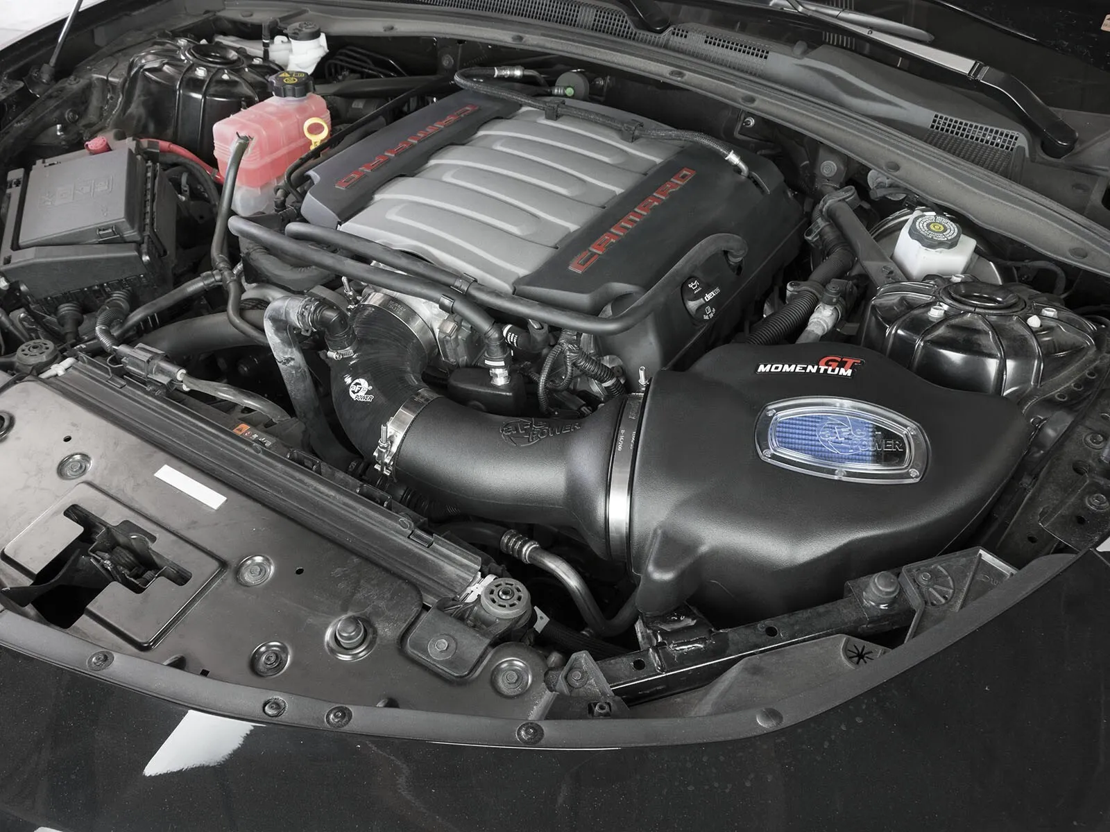Large 5-Layer Performance Air Filter: This Momentum GT intake system was designed around the largest filter possible to allow maximum performance and filtration. This cylindrical filter has a large oval (6-3/4" x 4-3/4") flange and is 9" tall inverted top Pro 5R filter media. The Pro 5R performance air filter features 5-layers of progressively finer mesh cotton gauze oiled media and is constructed with 100% polyurethane frame for long life and multiple cleaning cycles.