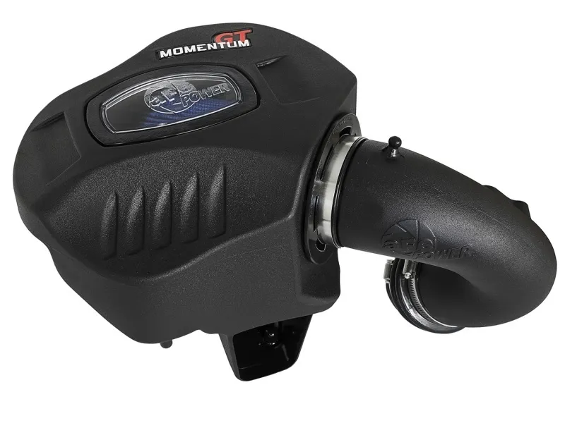 Unique One-Piece High Quality Housing W/ Sight Window: The smooth one-piece (Patent Pending) high quality sealed housing with auxiliary air inlet is used to eliminate the use of multiple-piece housings and ensure the coolest air intake charge available. A large, clear sight window is used for a hassle-free filter inspection and an aggressive style. High Quality Tube: This system uses a high quality plastic CAD designed, dyno-tuned, roto-molded intake tube to achieve maximum power gains while maintaining a perfect fit. Large 5-Layer Performance Air Filter: The Momentum GT intake is designed around a pre-oiled, large 8" tall 360 degree radial flow performance air filter with 5-layers of progressive finer mesh cotton media providing maximum airflow and performance. The unique air filter to housing interface (patent pending) allows for maximum filter size which increases the available air volume while simplifying the installation process. Aluminum Heat-Shield Panel: A durable aluminum heat-shield panel is secured on the housing to protect it from the high heat of the turbocharger. Premium Hardware: Premium stainless steel clamps and a silicone bellow coupling are used for strength and durability while also providing the most secure installation available. Momentum GT intakes are designed with fewer parts for a quick and simple installation. Note: This intake system is not CARB exempt at this time and is not legal for sale in California or use on vehicles registered with the California Department of Motor Vehicles.