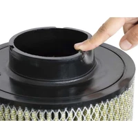 Pro GUARD7 Media: This filter features Pro GUARD7 Media that consists of 5-Layers of progressively finer mesh oiled cotton gauze and 2-layers of finer porosity synthetic non-woven media for maximum protection in the most extreme environment. The Pro GUARD7filter media has been tested at 99.51 percent filtration efficiency. Massive Washable/Reusable Filter: With 8-1/2" Base x 8-1/2" Top x 11" Height with a 4" flange, this filter is a flexible flange version of the popular Donaldson paper filter (P/N: ECB085011). Rather than throwing the filter away, you can now wash the filter and reuse it over and over again. Rounded Open Pleats: aFe performance air filters use a rounded, evenly spaced pleat design which produces more useable filter surface area for increased flow and greater dust holding capacity. 100% polyurethane construction: To allow multiple cleaning cycles, the top and base are made of 100% pliable polyurethane that does not deteriorate with time or exposure to heat and chemicals. Magnum SHIELD Pre-Filter: Protects your performance air filter from debris, repels water and keeps your air filter clean longer with minimal affect on air flow. aFe Power Universal Clamp-on performance filters have a limited 2-year warranty.