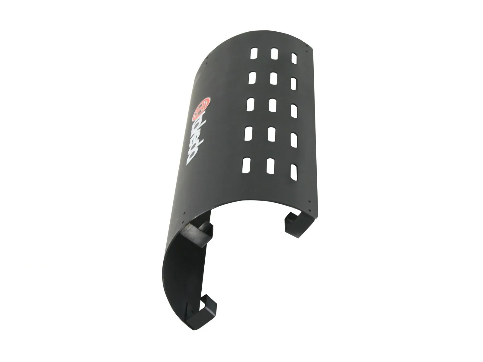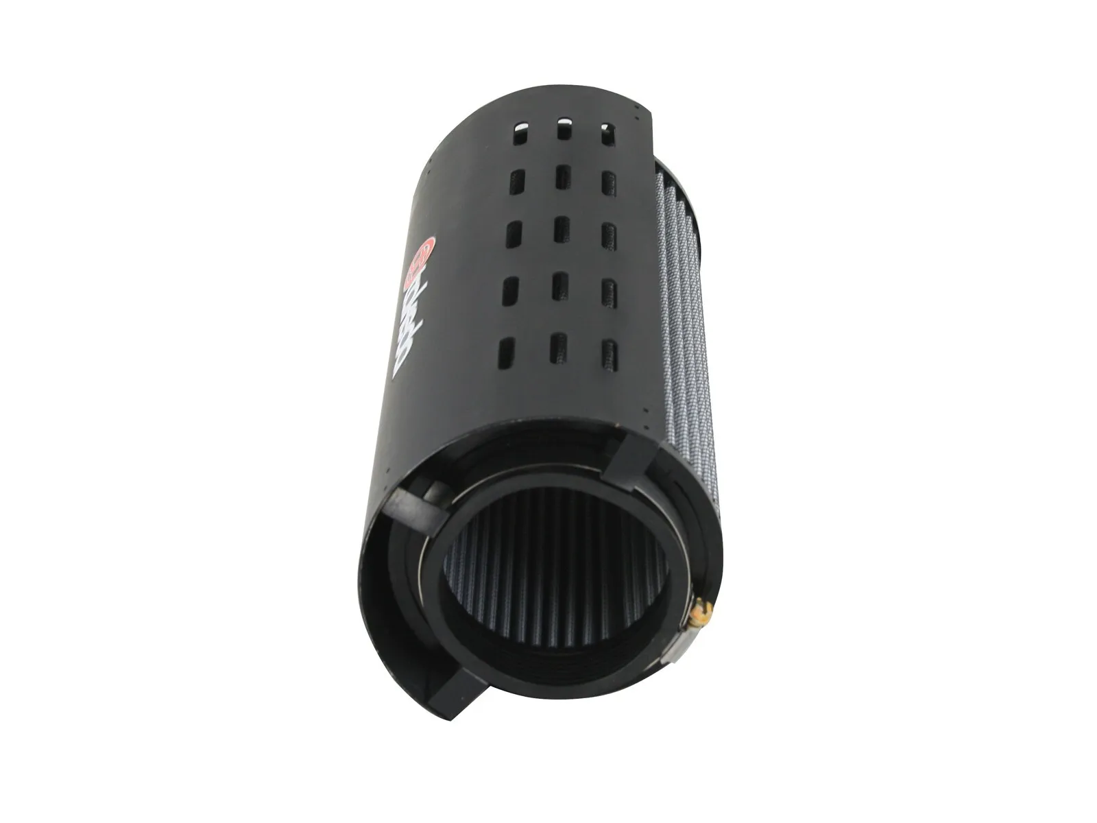 Stainless-Steel Construction: This stainless steel splash shield is powder-coated black and features built-in air slots that ensure sufficient airflow delivery. It's easy to install and is secured to the filter using the air filter's included clamps.