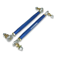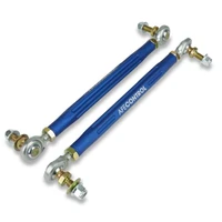 Improve handling and eliminate sway bar preload with aFe Controls adjustable end links. Sway bar preload is a scenario where your sway bar is in tension when your car is at rest. Sway bar preload affects how the vehicle handles making it stiffer when turning one direction versus the other. Factors like lowering springs can end up with uneven suspension heights which can lead to sway bar preload. If you have adjustable coilovers and are corner balancing the vehicle, it is especially important to zero out your sway bar preload to get consistent handling. Made with high quality Aurora rod ends and precision machined adjusters, these end links will make short work of dialing in your suspension. Joint articulation was designed to exceed factory range which prevents binding during operation. Equipped with right-hand and left-hand rod ends, the end links can be adjusted on-car without removal. Whether youre setting your car up for the street or track, aFe Control will get you there! Our adjusters are CNC machined out of 6061-T6 aluminum and anodized blue with laser etched logo. For superior quality and reliability, we use PTFE lined Aurora rod ends.