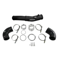 Smooth transitions in the mandrel-bent aluminum tubing decrease turbulence and minimize pressure loss, increasing horsepower and torque. This tube kit includes high-quality, stainless-steel, spring-loaded T-bolt clamps and heavy-duty, 5-ply, polyester reinforced silicone couplings. This intercooler tube kit features a factory style billet aluminum quick-connect adapter with an O-ring seal to ensure a leak-free fit while maintaining superior strength and durability. Finished in Wrinkle Black powder coating with a unique laser-etched aFe power logo for a custom look.