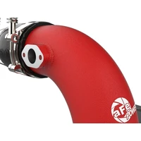 Smooth transitions in the mandrel-bent aluminum pipes decrease turbulence and minimize pressure loss, increasing horsepower and torque. The BladeRunner charge pipes kit provides a smooth transition between the turbo and the engine for lower operating temperatures and increased power. This kit includes high-quality, stainless-steel, spring-loaded T-bolt clamps and heavy-duty, 5-ply, polyester reinforced silicone couplings. This charge pipe kit features factory style billet aluminum quick-connect adapter with an o-ring to ensure a leak-free fit while maintaining superior strength and durability. Finished in textured red powder coating with a unique laser-etched aFe power logo for a custom look.