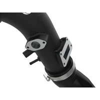 Smooth transitions in the mandrel-bent aluminum pipes decrease turbulence and minimize pressure loss, increasing horsepower and torque. This charge pipe kit provides a smooth transition between the turbo and the engine for lower operating temperatures and increased power. This kit includes high-quality, stainless-steel, SmartSeal clamps and heavy-duty, 5-ply, polyester reinforced silicone couplings for superior strength and durability. Finished in wrinkle black powder coating with a unique laser-etched aFe POWER logo for a custom look.