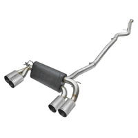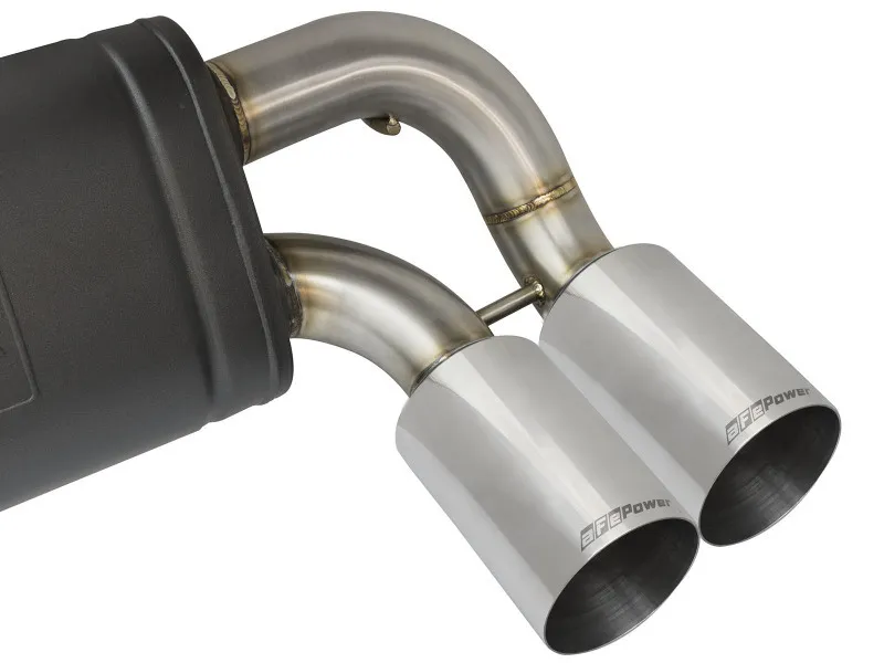 This cat-back exhaust system is constructed of 3 IN - 2-1/2 IN mandrel-bent 304 stainless steel tubing for maximum strength and durability. This system features a high-flow stainless steel high-temperature metallic black muffler, producing a aggressive sound. The muffler has a high-temperature metallic black finish for ultimate corrosion resistance. Finishing off this exhaust system are quad 4 IN diameter polished 304 stainless steel exhaust tips. The tips features a laser etched aFe POWER logo for a unique style. This system produces an aggressive sound unleashing all available horsepower and torque. Utilizing a factory style flange and hangers this system is a direct bolt-on system, which requires no cutting or modifications for a hassle-free installation. This system incorporates a factory style exhaust valve which use the factory exhaust valve motor (not included). The valve helps regulate, direct and control the flow of exhaust gases by opening, closing, or partially obstructing passageways depending on throttle position for maximum performance. A mitered merge collector is used to decrease turbulence and increase exhaust velocity resulting in increased horsepower, torque and improved throttle response. 100% TIG-Welded for race-proven strength and durability.