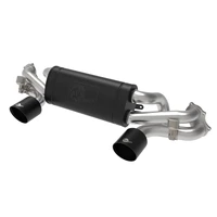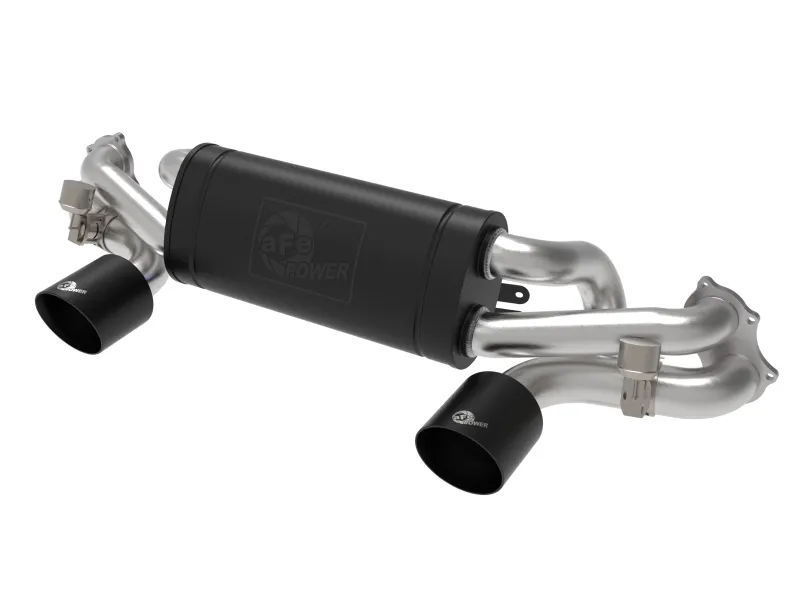 This cat-back exhaust system is constructed of 2-1/4 IN - 2-1/2 IN mandrel-bent brushed finished 304 stainless steel tubing for maximum strength and durability. Finishing off this exhaust system are dual 4-1/2 IN diameter satin black, ceramic coated, 304 stainless steel exhaust tips. The tips feature a laser etched aFe POWER logo for a unique style. This system produces an aggressive sound unleashing all available horsepower and torque. Utilizing factory style flanges and this system is a direct bolt-on system, which requires no cutting or modifications for a hassle-free installation. This system features a high-flow high-temperature metallic black muffler, producing a powerful sound. The muffler has a high-temperature metallic black finish for ultimate corrosion resistance. The stainless steel muffler features an integrated x-pipe to balance and evenly distribute exhaust pulses traveling through the exhaust system, minimizing exhaust drone and maximizing scavenging. This system incorporates factory style exhaust valves that integrate with the factory exhaust controls. The valves help direct and control the flow of exhaust gases by opening or closing passageways for maximum performance. State-of-the-art computer-aided design technology is utilized for precise vehicle fitment. 100% TIG-Welded for race-proven strength and durability.