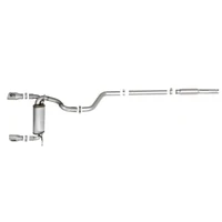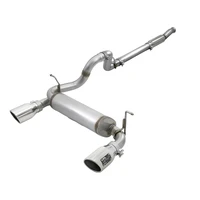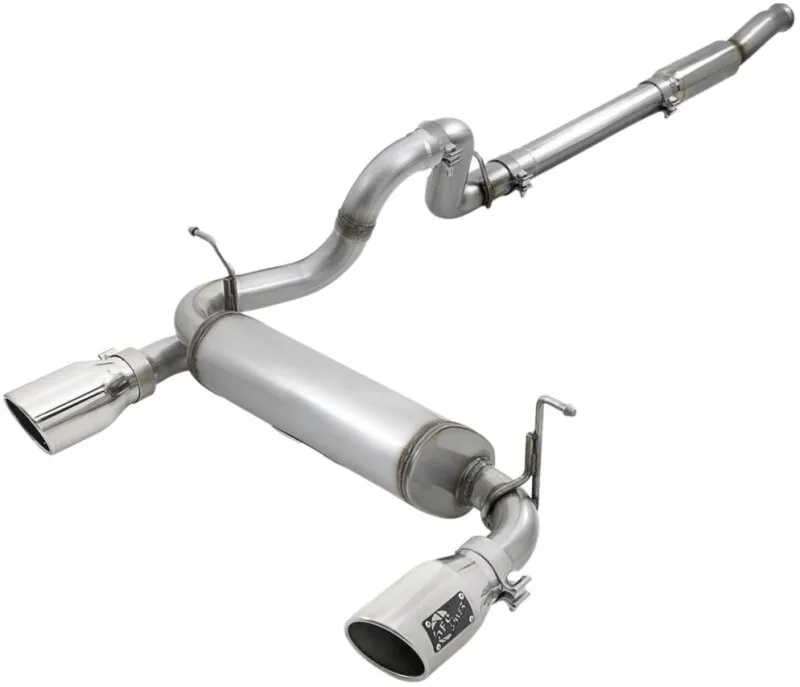 This cat-back exhaust system is constructed of 3 IN - 2-1/2 IN mandrel-bent 409 stainless steel tubing for maximum strength and durability. This system features a high-flow 409 stainless steel muffler, producing a throaty sound. Finishing off this exhaust system are dual 4-1/2 IN diameter polished 304 stainless steel clamp-on exhaust tips. The tips features an aFe POWER logo plate riveted on for a unique style. This system produces a throaty sound unleashing all available horsepower and torque.Utilizing factory style hangers this system is a direct bolt-on system, which requires no cutting or modifications for a hassle-free installation. 100% MIG-Welded for race-proven strength and durability.