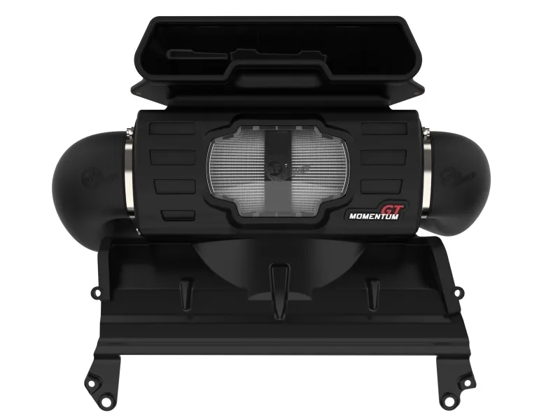 A pair of 360-degree radial flow air filters feature our oil-free Pro DRY S media with three layers of synthetic media for maximum convenience. The progressive layering provides great filtration efficiency and dust holding capacity, while not requiring the use of oils. This media is best suited for street and light off-road use. The inverted tops makes for more filter surface area, resulting in longer service intervals. Momentums innovative filter-to-housing interface was built to feature the largest air filter possible. Once the system is installed, the air filters can be easily removed from the housing for maintenance by only uninstalling the side intake tubes. The smooth one-piece sealed housing, constructed of heat-resistant cross-linked polyethylene (XLPE), features our patent pending filter-to-housing interface. Its innovative design minimizes the total number of parts, making for an easy installation. A massive clear sight window allows for hassle-free filter inspection without having to disassemble your intake system. The housing incorporates both the factory hood air inlet scoop and the grille inlet using no additional hardware. This system features a trio of high quality, computer-designed, dyno-tuned intake tubes to achieve maximum power gains while maintaining a perfect fit. Our XLPE material is heat soak resistant and extremely durable. Stainless-steel T-bolt clamps are included for strength, and a premium silicone coupling allows for ample flexibility and durability. Momentum GT intakes are designed with fewer parts for a fast and easy installation.