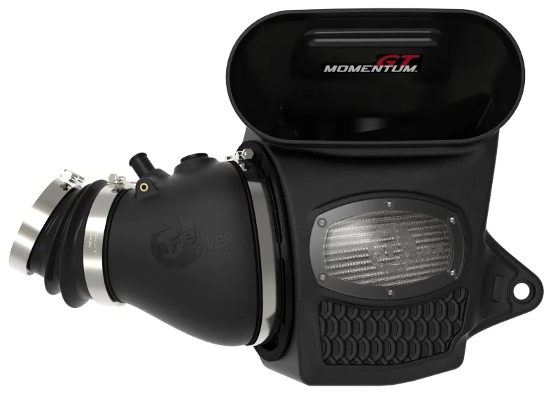 Momentums unique filter-to-housing interface was built to feature the largest air filter possible. This 8 tall 360-degree radial flow air filter features our oil-free Pro DRY S media with three layers of synthetic media for maximum convenience. Its progressive layering provides great filtration efficiency and dust holding capacity, while not requiring the use of oils. This media is best suited for street use. Its inverted top makes for more filter surface area, resulting in longer service intervals. The smooth one-piece sealed housing, constructed of heat-resistant cross-linked polyethylene (XLPE), features our patent-pending filter-to-housing interface. Its innovative design minimizes the total number of parts, making for an easy installation. A large, clear sight window allows for hassle-free filter inspection, without having to disassemble your system. The housing utilizes the factory hood scoop and retains the water separating functionality. This system features a high quality, computer-designed, dyno-tuned intake tube to achieve maximum power gains while maintaining a perfect fit. Its XLPE material is heat soak resistant and extremely durable. Premium stainless-steel T-bolt clamps are used for durability and provide the best corrosion resistance possible. Momentum GT intakes are designed with fewer parts for a quick and simple installation.
