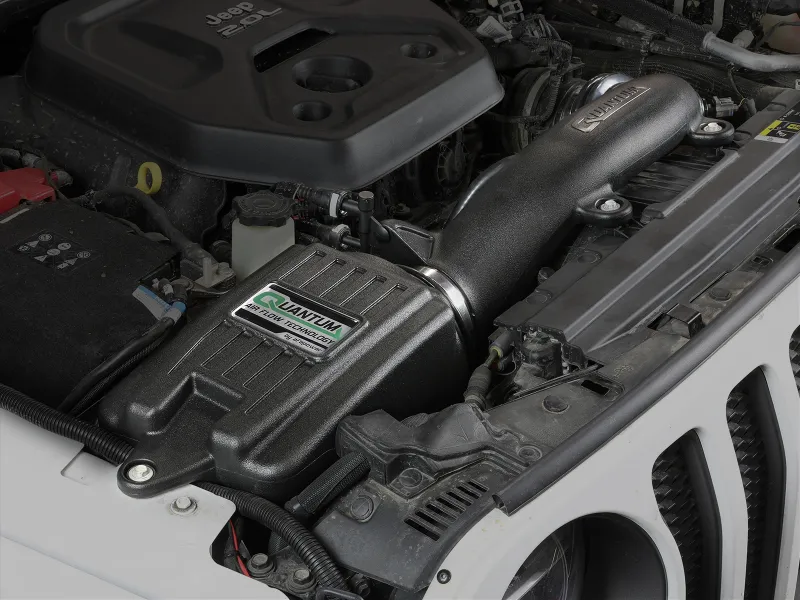 Unique Integrated Filter-to-Housing Intake Design: Quantum uses an integrated filter-to-housing design by attaching both components with 4 captive screws for a positive surface area seal and quick and easy install. Quantum's Roto-molded housing features a unique, 5 rib industrial grade look for long lasting durability and aFe quality recognition. Quantum Pro 5R Performance Air Filter: Filter Media-Equipped with our oiled, 360-degree radial flow air filter with 5-layers of progressive, cotton media to provides maximum flow, performance and protection. Filter Construction-Specifically designed for the Quantum Series intake systems with injection molded base and top for lighter weight and rigidity. Captive screws are used to eliminate lost hardware and to securely fasten to housing. The base includes a built-in, 3-angle velocity stack for smooth, even airflow. Dyno Tuned Intake Tube: Quantum uses a dyno tuned, CAD-designed intake tube to achieve optimum air flow and is made from high impact, XLPE material for heat soak resistance and durability while maintaining a perfect fit. Silicone Bellows Coupling: The Quantum Intake System includes silicone bellows couplings to absorb excessive engine movement and are flexible for a secure and easy install. Quantum intakes are designed with fewer parts for a quick and simple installation. Hassle-Free Installation: This is a direct fit intake system that utilizes factory mounting points and requires no cutting or modifications. All clamps, couplings, and hardware are included for hassle-free installation. Note: This intake system is not CARB exempt at this time and is not legal for sale in California or use on vehicles registered with the California Department of Motor Vehicles. All aFe intake systems are engineered and manufactured in our Corona, California manufacturing facility.
