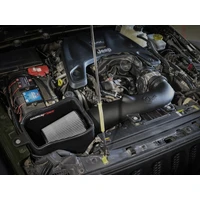 This 8 tall 360-degree radial flow air filter features a 4.5" flange and our oil-free Pro DRY S media with three layers of synthetic media for maximum convenience. Its progressive layering provides great filtration efficiency and dust holding capacity, while not requiring the use of oils. This media is best suited for street and light off-road use. Its inverted top makes for more filter surface area, resulting in more flow and longer service intervals. The included performance air filter is surrounded by an open-element XLPE (cross-linked polyethylene) polymer housings that minimize warm engine air for maximum performance. The factory air inlet scoop passes directly into the airbox providing a ram-air effect. The open design allows for easy viewing of the air filter and delivers an aggressive intake induction sound. This system features a high quality, computer-designed, dyno-tuned intake tube to achieve maximum power gains while maintaining a perfect fit. The XLPE material is heat soak resistant and extremely durable. This is a direct fit intake system that utilizes factory mounting points and requires no cutting or modifications. All necessary clamps, couplings, and hardware are included. Its revolutionary design, featuring our patent pending filter-to-housing interface, uses half the number of parts of a traditional cold air intake system.