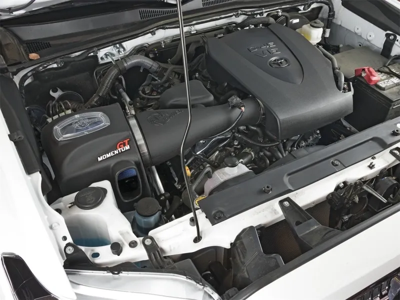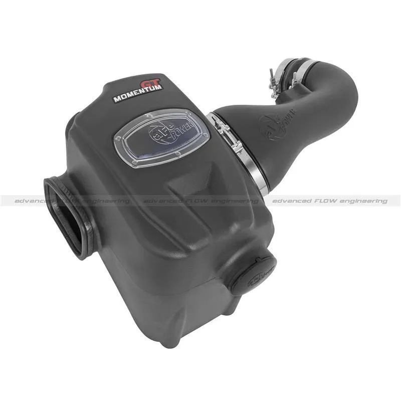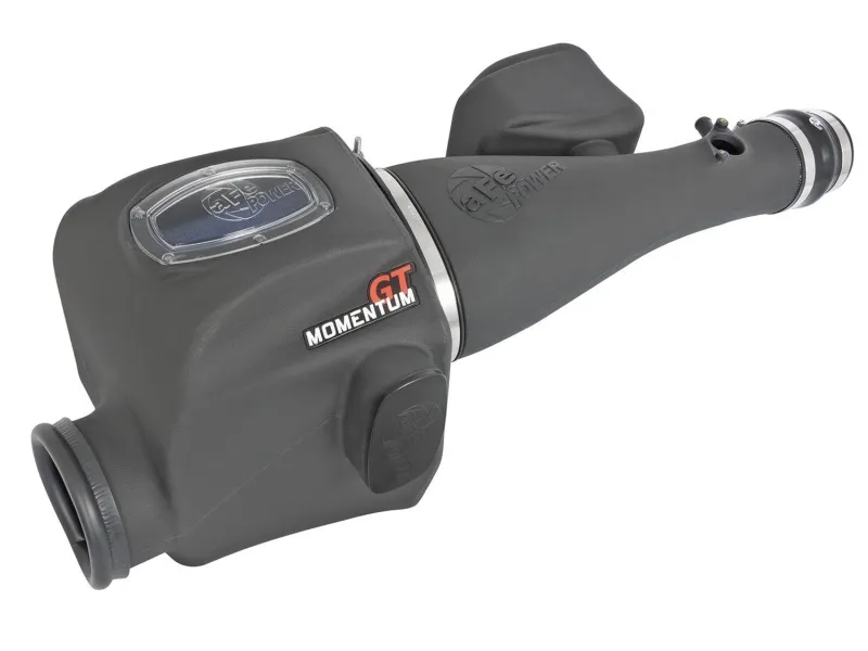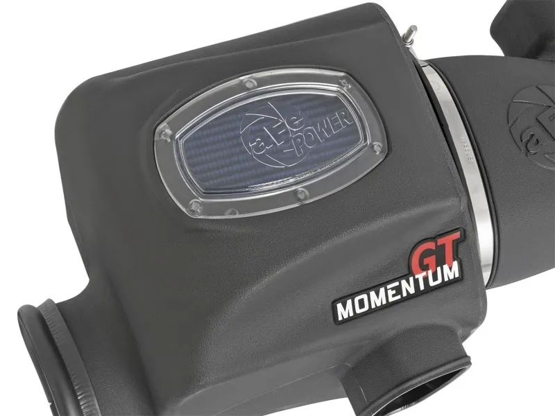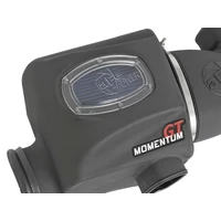 The Momentum GT intake is designed around a pre-oiled, large 9" Tall conical inverted top 360 degree radial flow performance air filter with 5-layers of progressive finer mesh cotton media providing maximum airflow and performance. The unique air filter-to-housing interface (patent pending) allows for maximum filter size which increases the available air volume while simplifying the installation process.