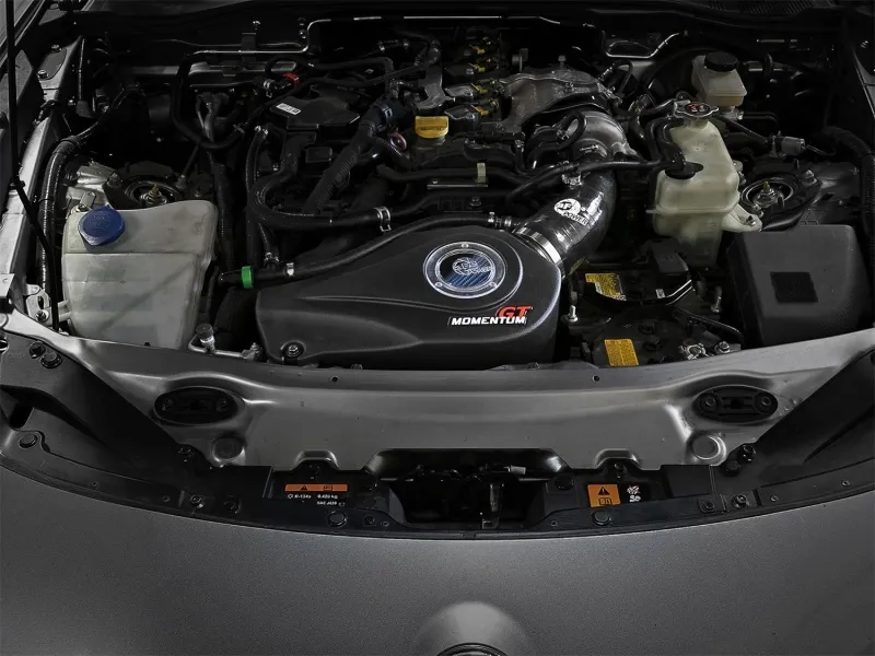 Unique One-Piece High Quality Housing W/ Sight Window: A custom computer designed roto-molded housing eliminates the use of multiple components and ensures the coolest air intake charge available. A clear sight window allows for filter inspection without removal of the airbox. The roto-molded housing is made out of black cross-linked polyethylene. Reinforced Silicone Tube: This system uses a high performance reinforced silicone intake tube to achieve maximum power gains while maintaining a perfect fit. Large 5-Layer Performance Air Filter: This Momentum GT intake system was designed around the largest filter possible to allow maximum performance and filtration. This cone filter has a 3-1/2" round flange and is 7-1/2" tall with an inverted top. The Pro 5R performance air filter features 5-layers of progressive finer mesh cotton media providing maximum airflow and performance. Custom Multiport Fitting: This kit includes a custom multiport fitting for the vacuum lines connecting to the air intake pass in order to prevent the check engine light and make sure the vehicle runs perfectly. Mounts into the factory location: This air intake system is installed using only the factory mounting loc ation to guarantee a perfect fit and easy installation.
