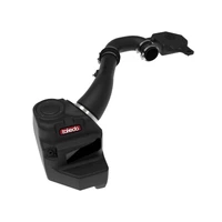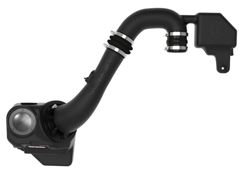 This aFe POWER Pro DRY S is a 7-1/2 tall, oil-free, 360-degree conical flow performance air filter with three layers of synthetic media for maximum convenience. Its progressive layering provides great filtration efficiency and dust holding capacity, while not requiring the use of oils. This media is best suited for street and light off-road use. The sealed XLPE polymer housing featres a rugged design, as well as a clear sight window, allowing for hassle-free filter inspection. aFe POWER's patent pending filter-to-housing interface eliminates the use of an overabundance of parts, further simplifying the installation process. The housing utilizes the factory air inlet, using no additional hardware, and features an optional auxiliary air inlet that pulls in additional air.This system features a two-piece, computer-designed, roto-molded intake tube to achieve maximum power gains while maintaining a perfect fit. Constructed from XLPE (cross-linked polyethylene) polymer, it is heat soak resistant and extremely durable. A factory-style Helmholtz Chamber is integrated into its design, toning down any drone. All stainless-steel clamps, hardware, and silicone couplings are included for a hassle-free installation. This is a direct bolt-on kit that requires no cutting or drilling on OEM parts.