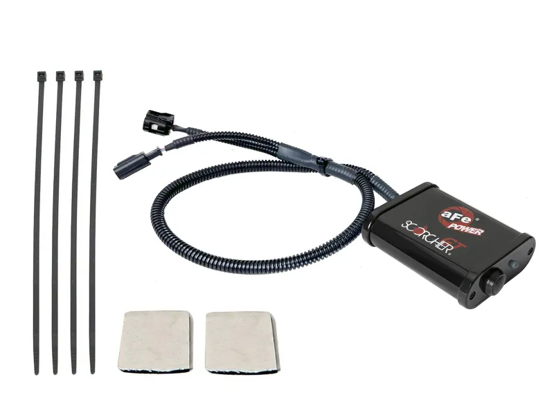 A simple 30 minute install will give you an increase in power. The aFe POWER SCORCHER GT Module includes a high quality case & wire harness with factory style connectors for an easy plug & play installation. The case is equipped with an ON/OFF button and a blue L.E.D. light to indicate when the module is powered up. This performance module connects to and alters Mass Air Flow (MAF) sensor signal. It improves vehicle performance and throttle response. This quick and easy plug & play SCORCHER GT module adds horsepower and torque by altering MAF sensor signal to increase performance and improve vehicle efficiency and throttle response. aFe SCORCHER GT modules uses high quality aluminum extrusion black powder-coated enclosure casing and factory style connectors which requires no modification to your factory harness. These factory style connectors plug directly into the stock wiring harness connectors and sensors. This module comes with a built-in blue L.E.D. light to show the module is powered up and functioning correctly. It can be turned on and off easily thanks to the button on the case. The blue L.E.D. light will be on when the module is powered up. SCORCHER GT modules are 100% tested for proper protection. These modules work amazingly on stock vehicles and are optimized for maximum performance with use of aFe POWER performance products. This SCORCHER GT Module will work with aFe POWER Super Stock Induction System, Takeda Momentum Intake System, Momentum GT Cold Air Intake System, and the Magnum FLOW OE Replacement Air Filter.