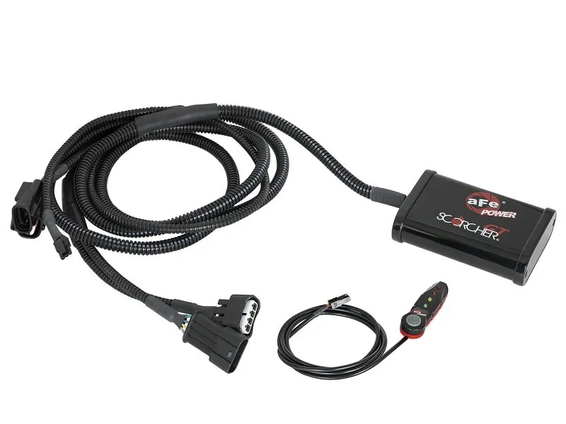 A simple 30 minute install will give you a huge increase in power. The aFe POWER SCORCHER GT Module includes a high quality case & wire harness with factory style connectors for an easy plug & play installation. A LED light switch provides In-Cabin On-The-Fly power adjustments. The 4-Power settings are adjustable with one button and the LED light represent the settings: Stock (Green), Sport (Yellow), Sport+ (Orange) and Race (Red) . This performance module increases turbo boost, thus Improving vehicle performance and throttle response. This quick and easy plug & play SCORCHER GT module adds significant power by altering pressure sensor signals to increase turbo boost to improve vehicle efficiency, power and throttle response. SCORCHER GT modules features In-Cabin On-the-Fly power adjustment to accommodate any situation. This adjustment is controlled by via LED light switch with a button that can be easily mounted in any location in the cabin. aFe SCORCHER GT modules uses high quality aluminum extrusion black powder-coated enclosure casing and factory style connectors which requires no modification to your factory harness. These factory style connectors plug directly into the stock wiring harness connectors and sensors. SCORCHER GT modules are 100% tested for proper protection. These modules work amazingly on stock vehicles and are optimized for maximum performance with use of aFe POWER performance products.
