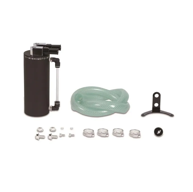 The Mishimoto aluminium Oil Catch Can will prevent a harmful buildup of oil inside of the turbocharger, intake manifold, intercooler and piping. Our catch can prevents oil from getting into pressurized turbo plumbing and stops oil vapors from getting into the intake system that would ultimately lead to lower combustion temperatures and reduced overall efficiency. The polished Mishimoto aluminium Oil Catch Can comes complete as a kit containing a mounting bracket, hose, all necessary clamps, fittings, and mounting hardware, for a perfect upgrade in performance and aesthetics for your car. This oil catch can, as with all our catch cans, comes with the unparalleled Mishimoto Lifetime Warranty you know and trust.