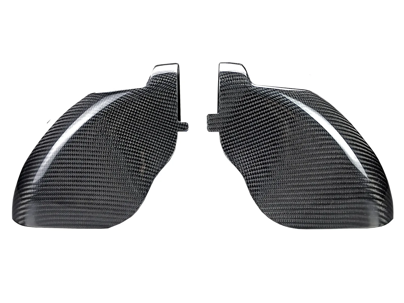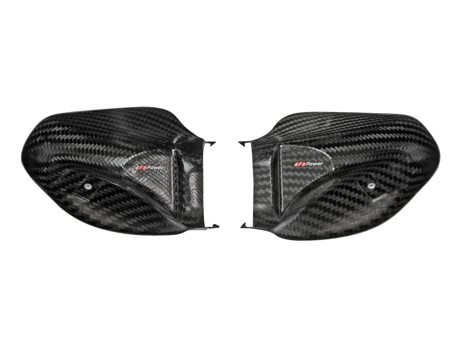 Improve your airflow path by directly replacing your restrictive factory inlet ducts with our larger carbon fiber air scoops.