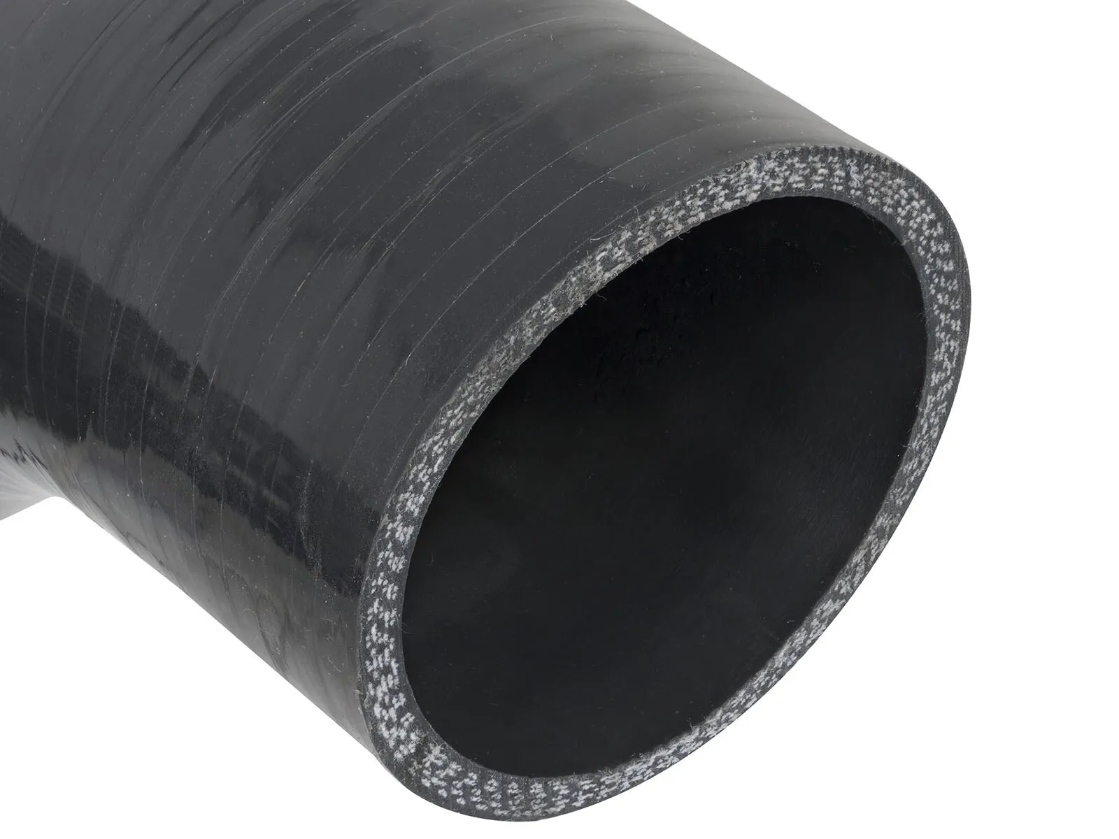 - 5-Ply polyester reinforced silicone lower cold-side hose with metal inserts to withstand extreme amounts of boost pressure
